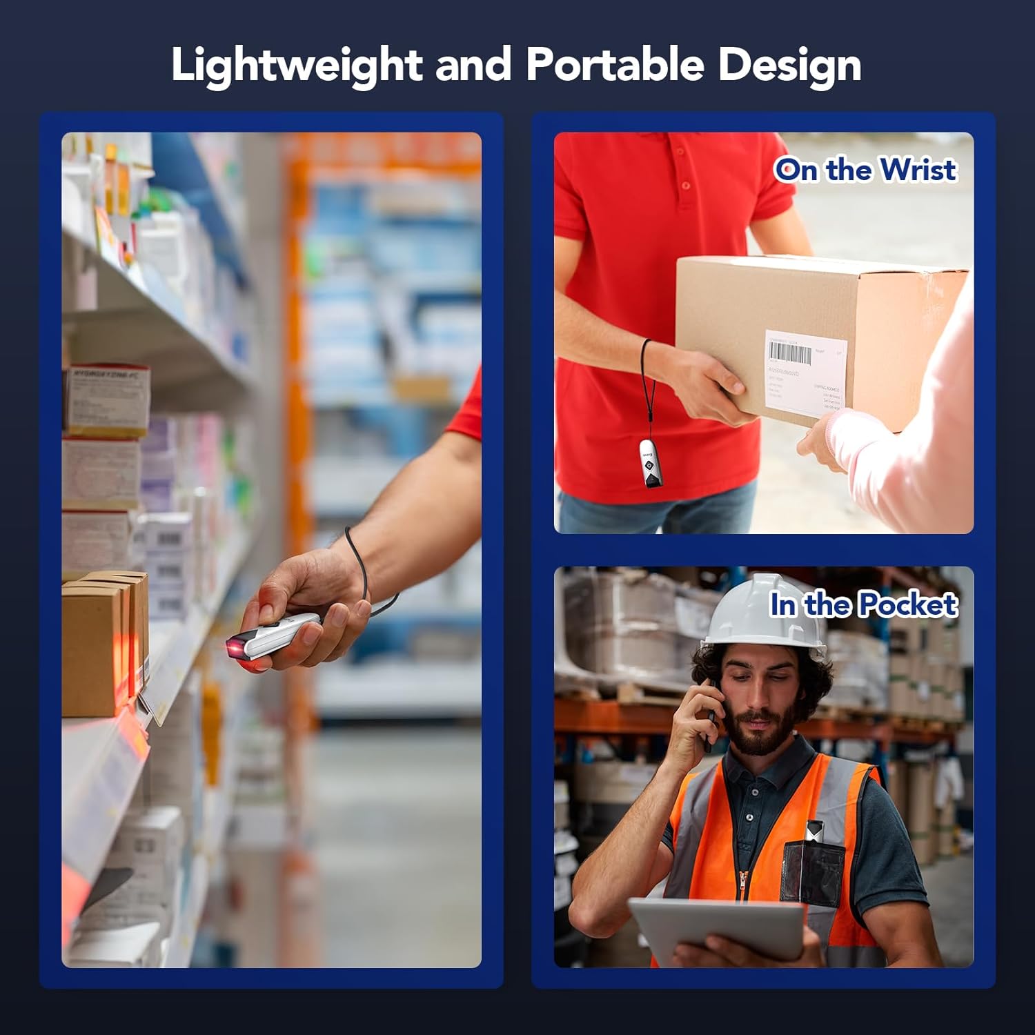 This super mini portable pocket 2D barcode scanner with unique, lightweight, and compact appearance shape design,